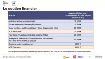 L’aide ADEME porte sur les coûts de prestation externe liés à l’accompagnement (les coûts internes ne sont pas éligibles).
